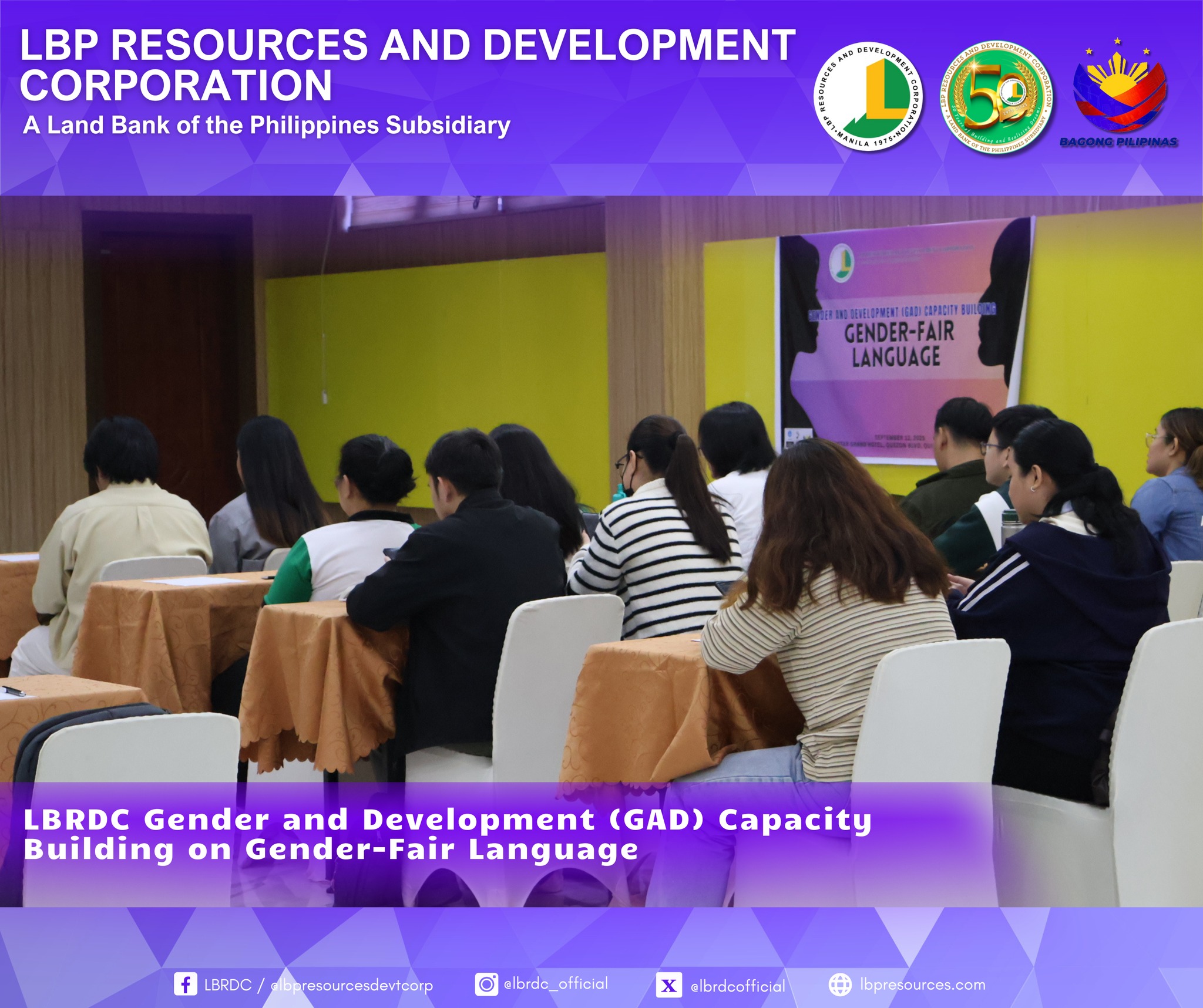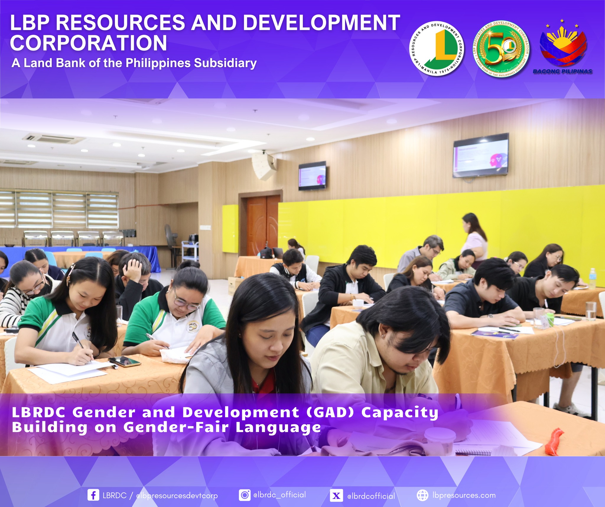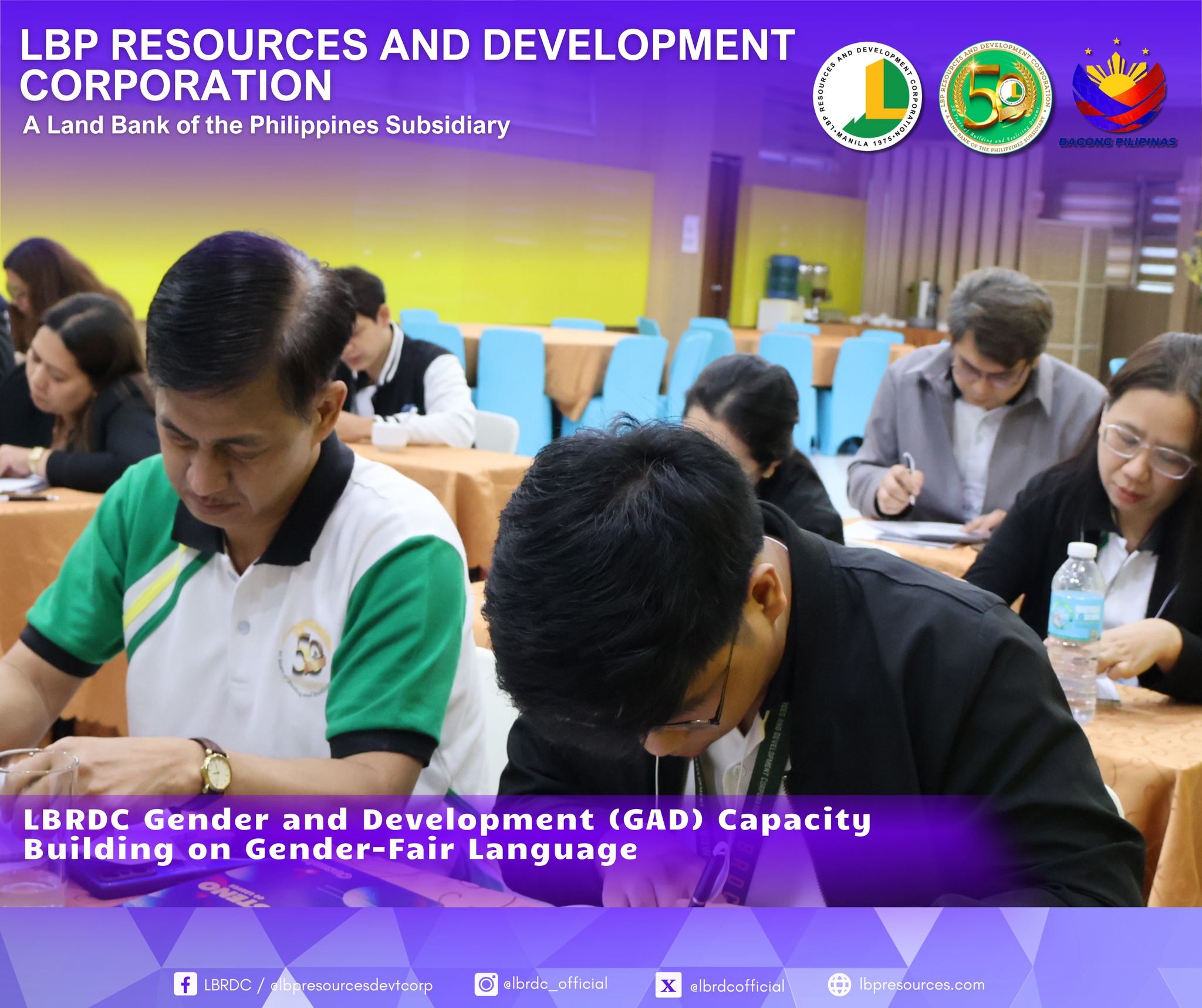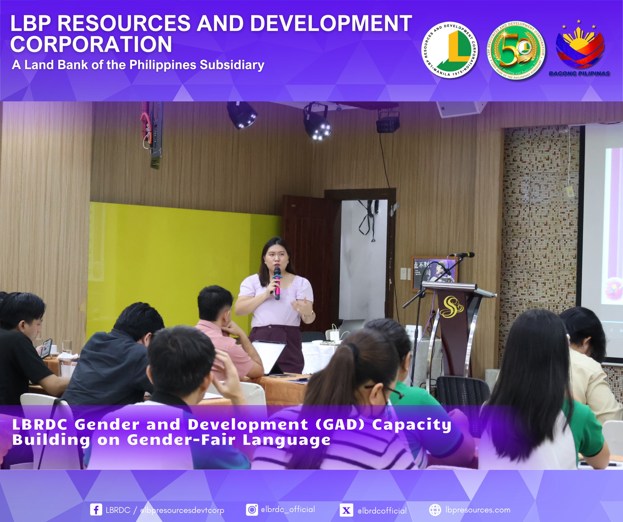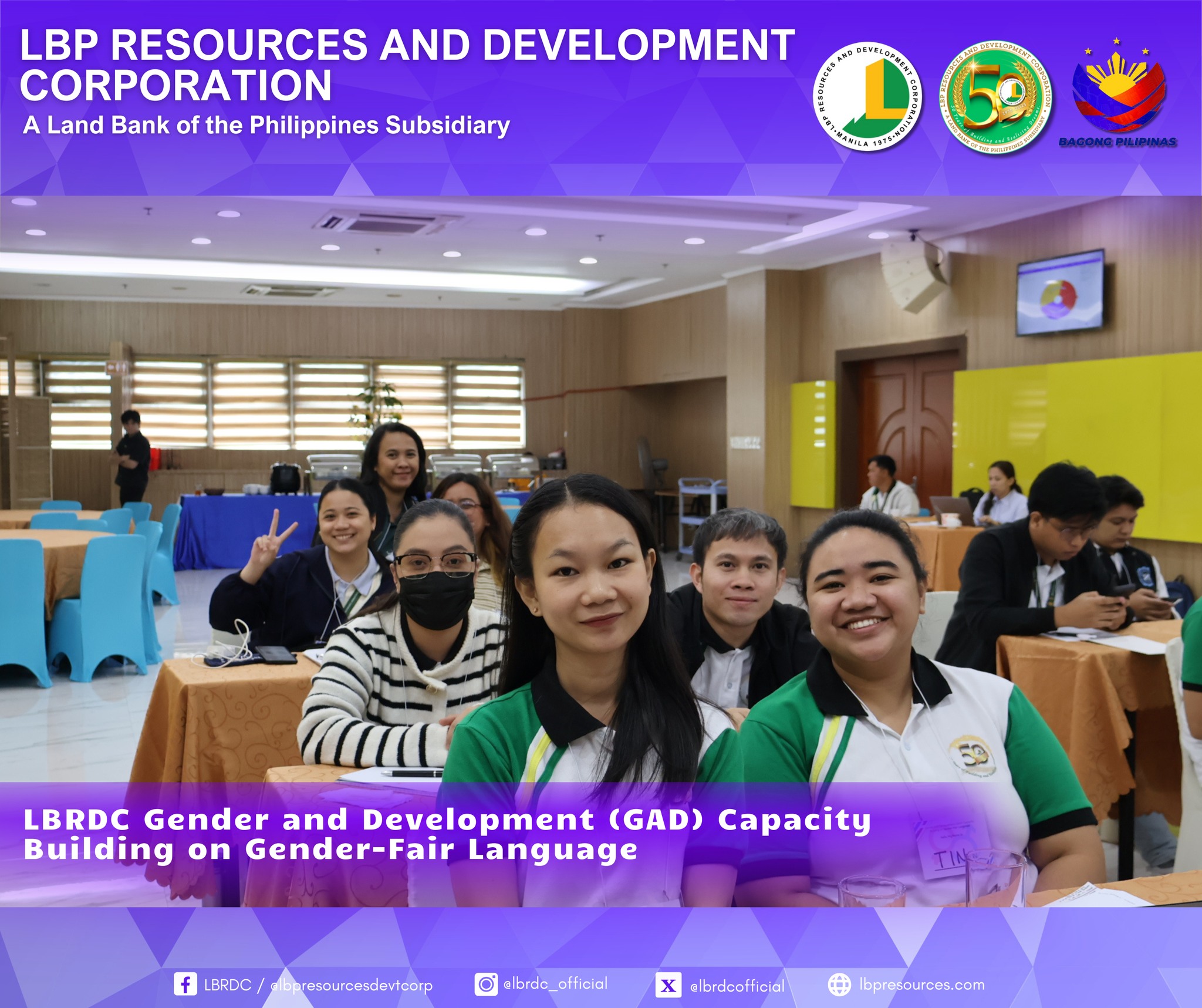 As part of LBRDC’s GAD Plans and Budget for CY 2025, the GAD Technical Working Group successfully organized the Gender-Fair Language and Inclusive Communication Training. The activity highlighted the importance of eliminating gender bias in communication and strengthening employees’ awareness and commitment to gender equality.