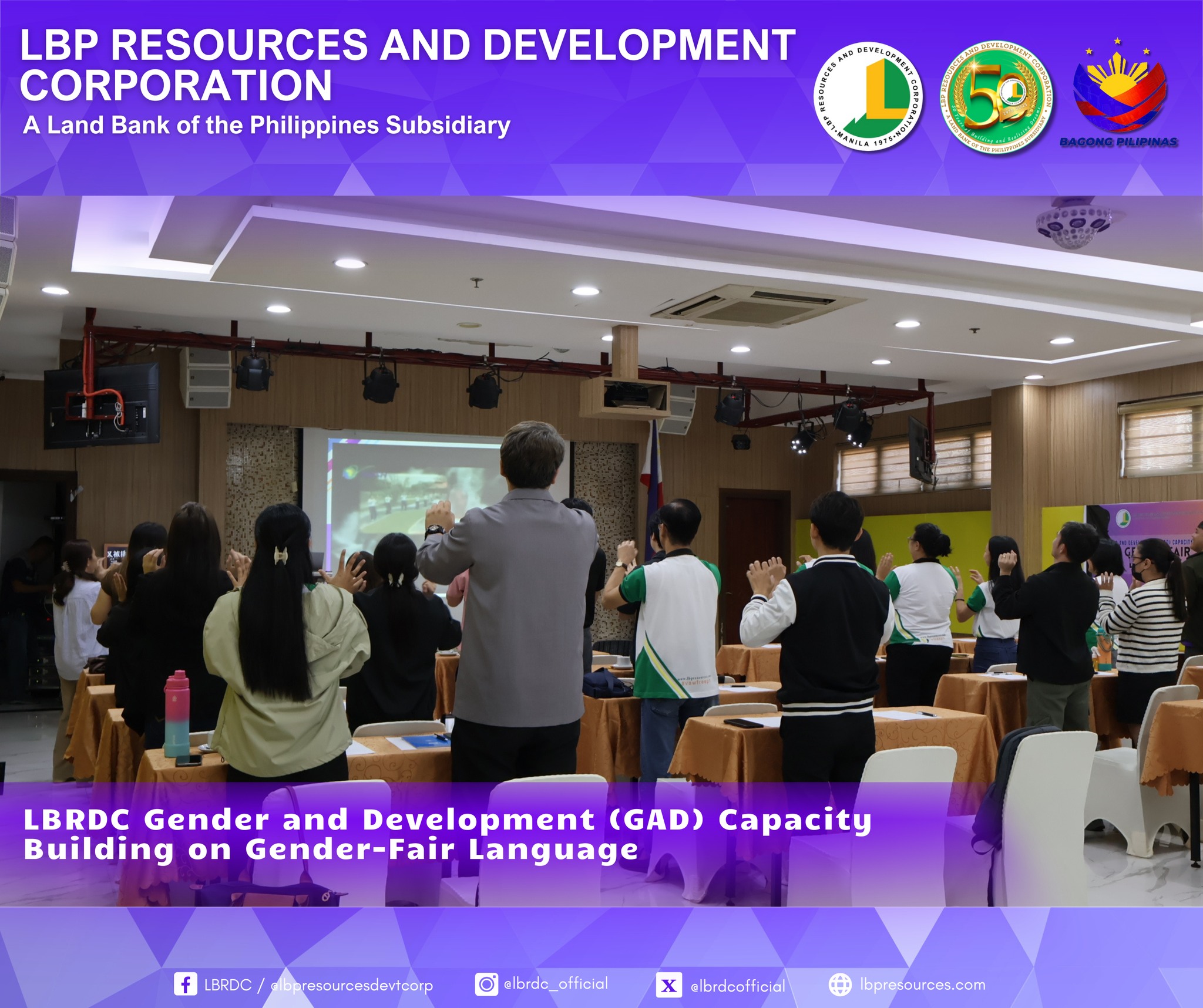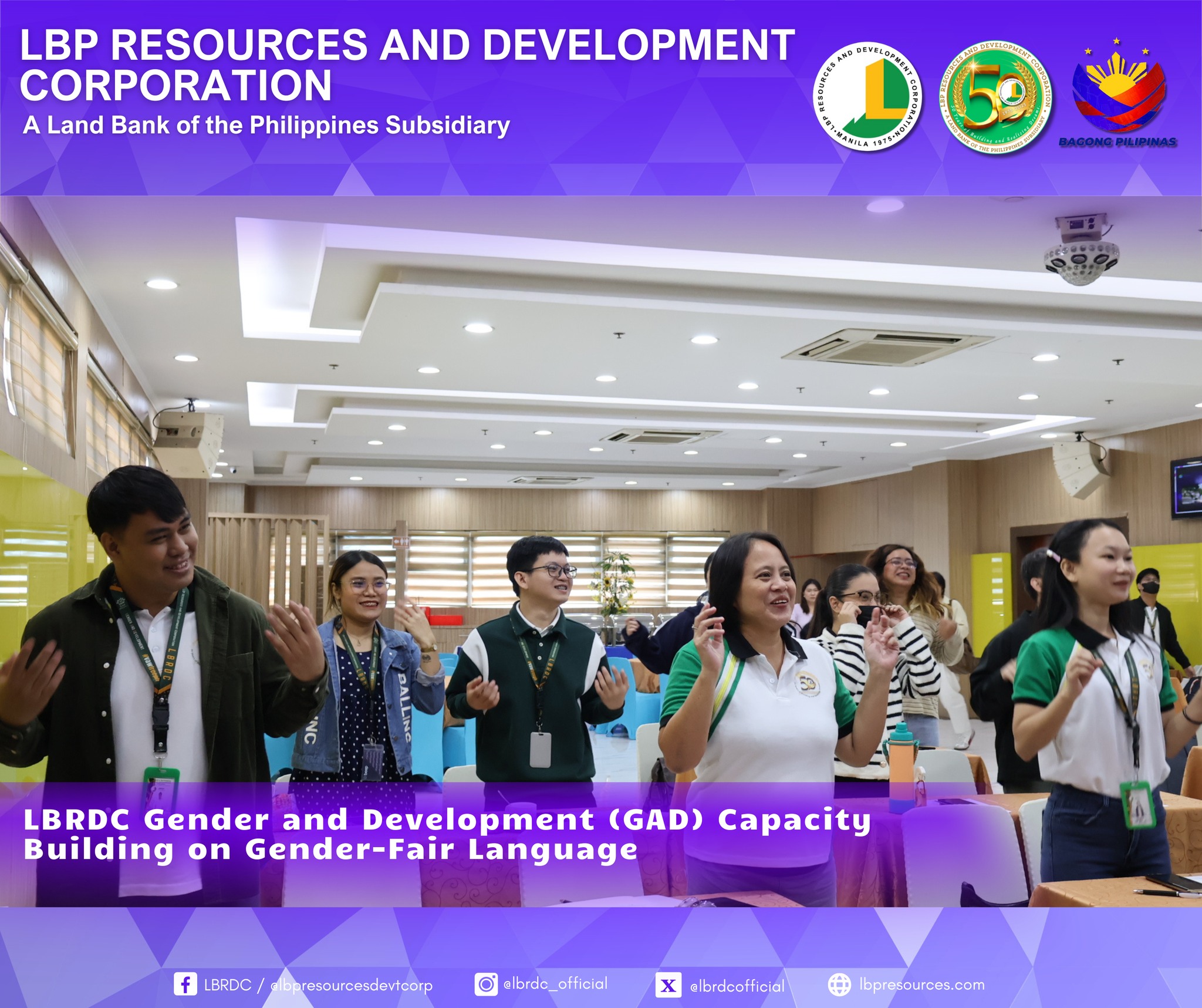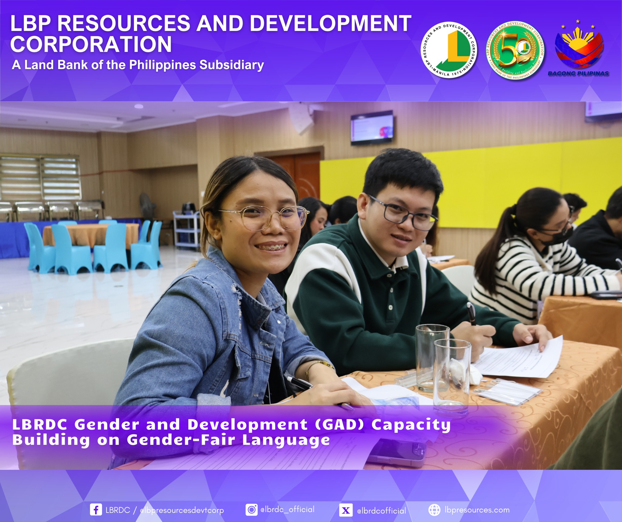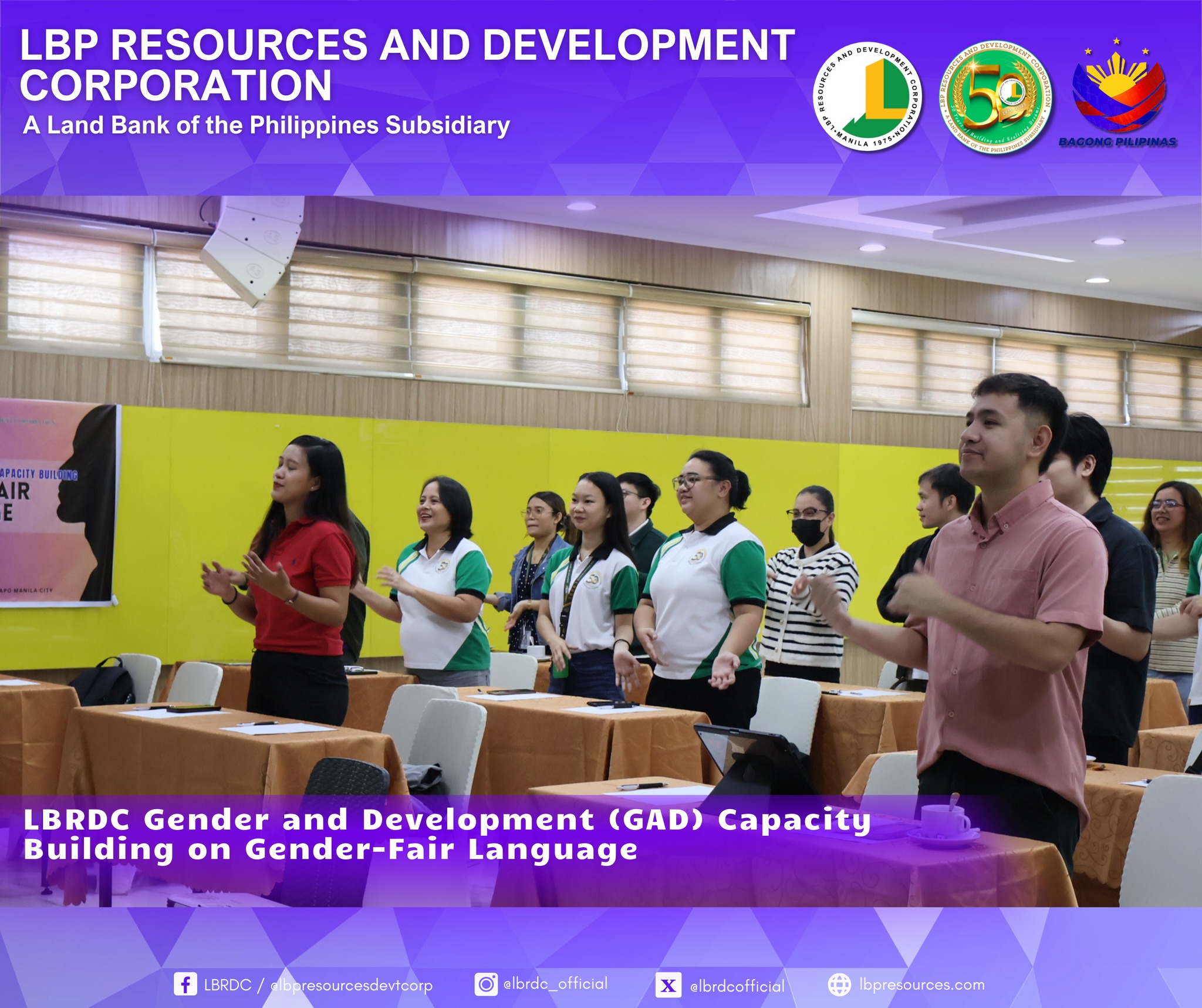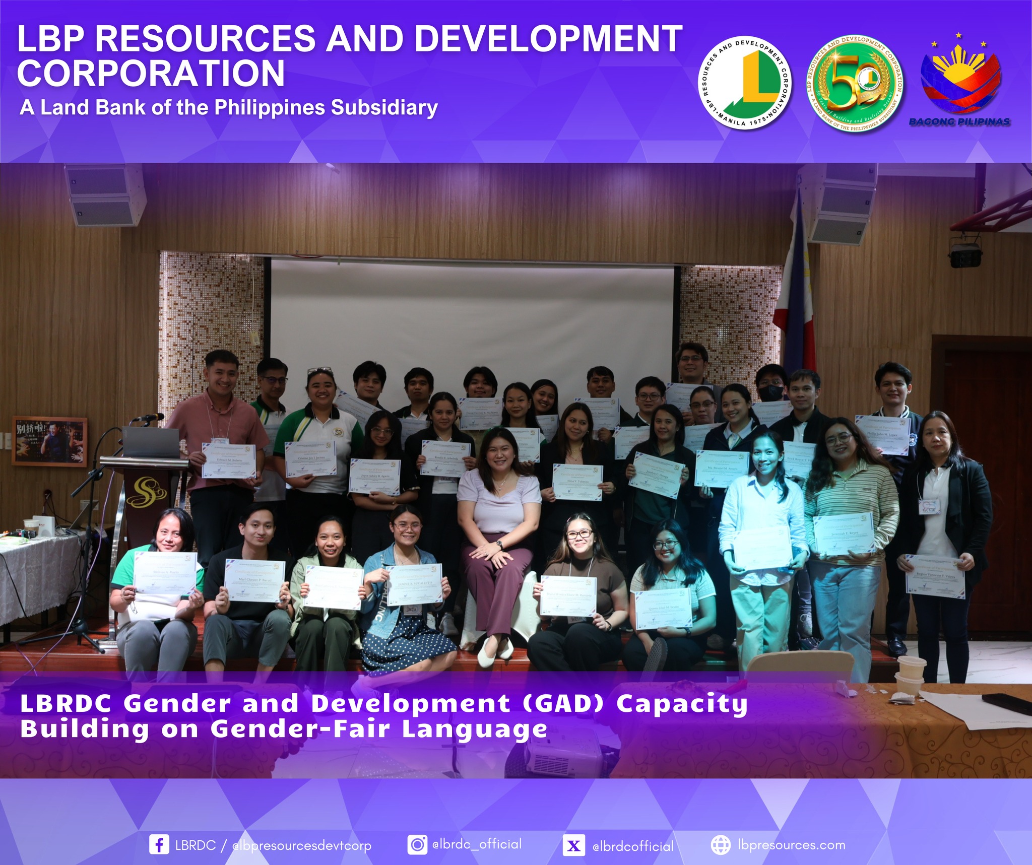 As part of LBRDC’s GAD Plans and Budget for CY 2025, the GAD Technical Working Group successfully organized the Gender-Fair Language and Inclusive Communication Training. The activity highlighted the importance of eliminating gender bias in communication and strengthening employees’ awareness and commitment to gender equality.